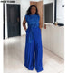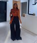 Two-piece set – includes matching top and pleated pants for a coordinated look.